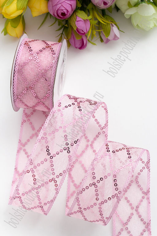 Лента с пайетками 4 см*10 ярд (SF-5753) светло-розовый №17