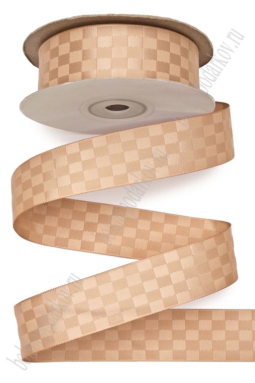 Лента декоративная "Квадратики" 2,5 см*20 ярд (SF-715), темно-бежевый №835
