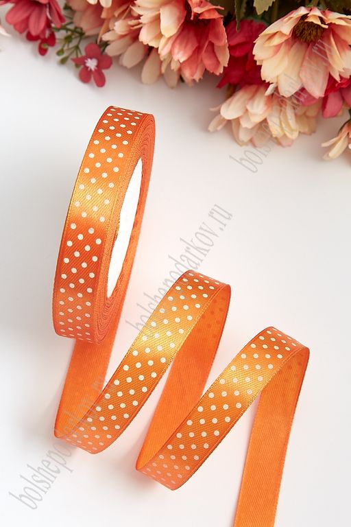 Лента атласная в горошек 1,5 см*25 ярд (SF-3442), темно-оранжевый №025