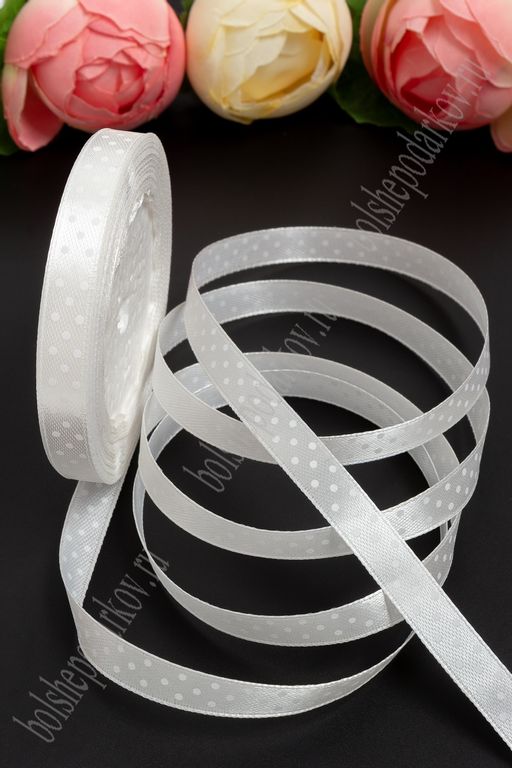 Лента атласная в горошек 1 см*25 ярд (SF-1367) молочный №042