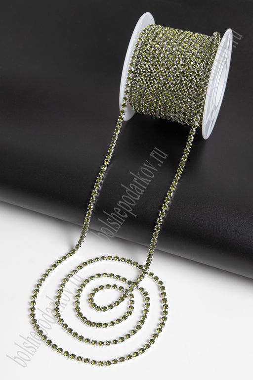 Стразы в бобине SS8М (2,4 мм*10 ярд) SF-2054, фисташковый в серебряной оправе
