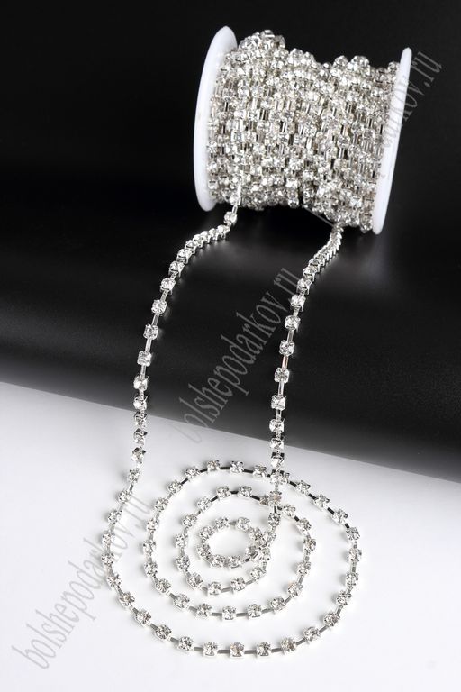 Стразы в бобине SS16 (4 мм*10 ярд) SF-2053, серебро в серебряной оправе
