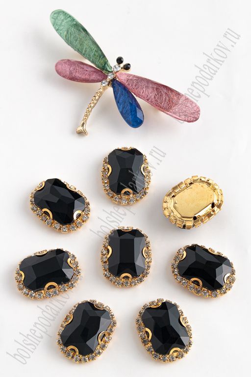 Стразы пришивные в золотой оправе 18*24 мм "Прямоугольник" (5 шт) SF-2050/1, черный №16