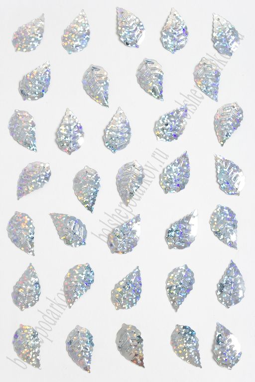 Пайетки "Листик" 25*14 мм*500 гр (SF-3064), серебряный №50112