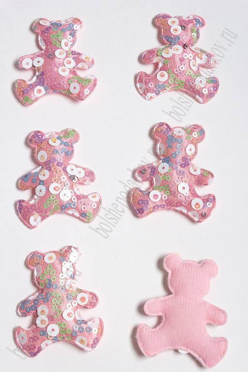 Патч с крупными пайетками "Мишка" 58*48 мм (10 шт) SF-2975, розовый