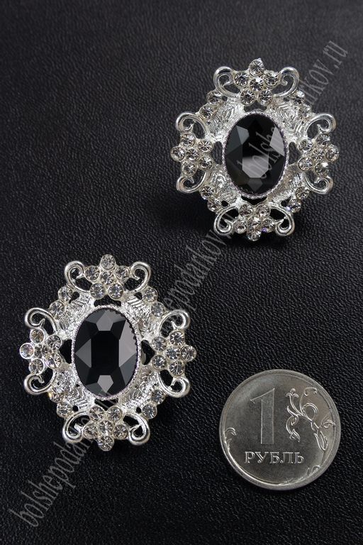 Серединка ювелирная (2 шт) SF-5794, серебро/черный №6