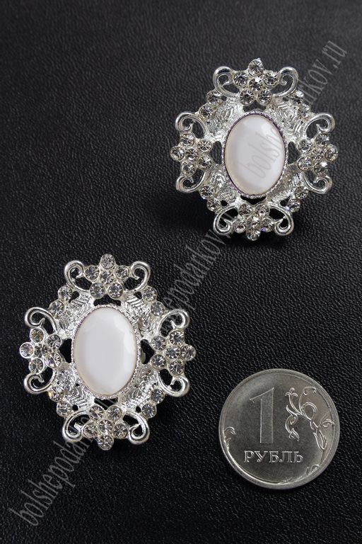 Серединка ювелирная (2 шт) SF-5794, серебро/белый
