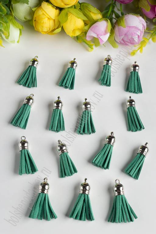 Кисточки замшевые с серебряным колпачком 3,8 см (20 шт) SF-1653, зеленый №6084