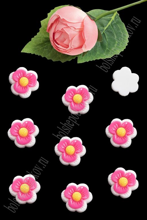 Кабошон "Цветочек" (50 шт) SF-5692, белый/ярко-розовый