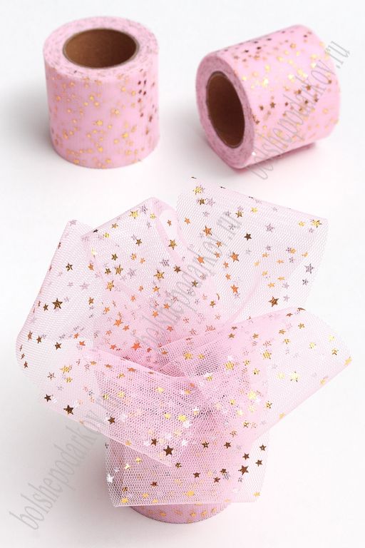 Фатин Звездочки 5,5 см*15 ярд (SF-5809) розовый/золото №26