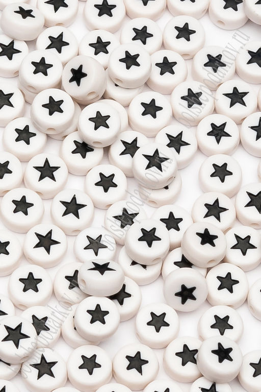 Бусины круглые "Звёздочки" 7 мм (50 гр) SF-7263, белый/черный