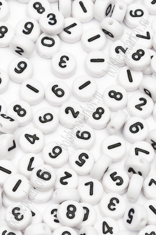 Бусины круглые "Цифры" 7 мм (50 гр) SF-7263, белый/черный