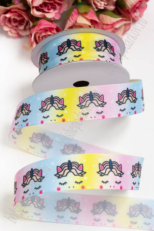Лента репсовая 2,5 см с рисунком "Единорожка" SF-3462, №7