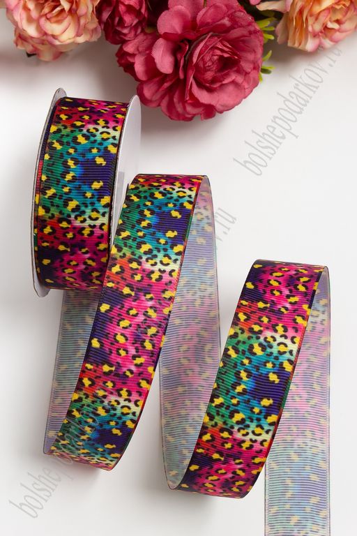Лента репсовая 2,5 см с рисунком "Леопардовый принт" SF-5185, №3