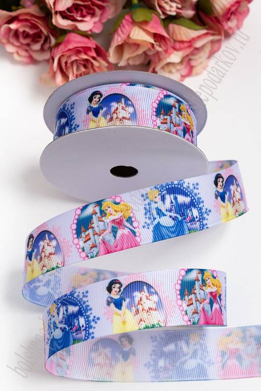Лента репсовая 2,5 см с рисунком "Принцессы" SF-3461