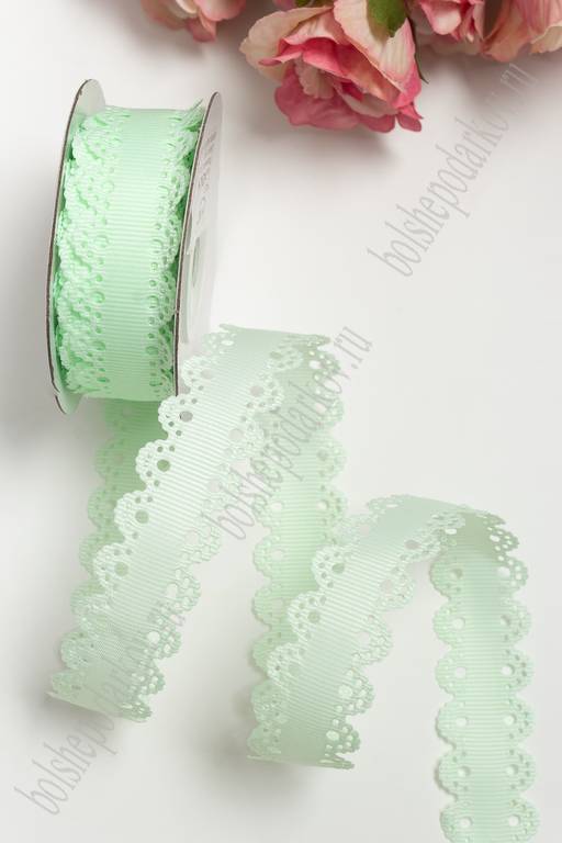 Лента репсовая с ажурными краями, 2 см (SF-3453) мятный №50