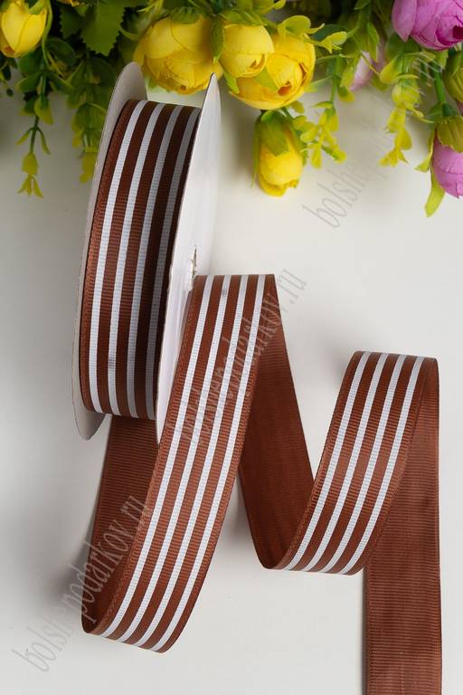 Лента репсовая 2,5 см*20 ярд "Полоска" SF-1312, коричневый