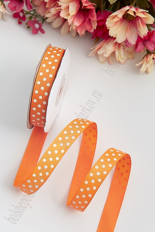 Лента репсовая 1,5 см*20 ярд "Горох" SF-3446, оранжевый №24