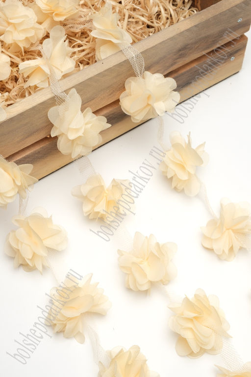 Цветочек шифоновый 5,5 см на ленте (35 шт) SF-7043, бежевый №11