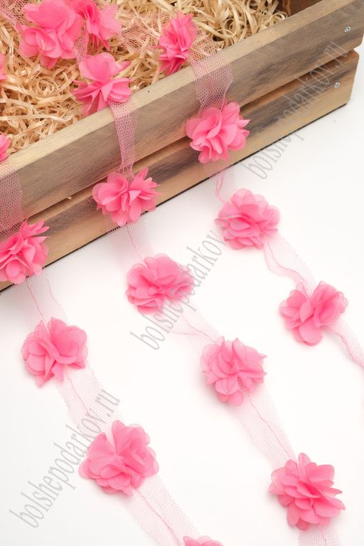 Цветочек шифоновый 4 см (35 шт) на ленте (SF-7042) розовый №176