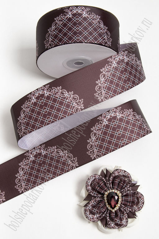 Лента репсовая 4 см*25 ярд с рисунком "Клетка" SF-7224, №4