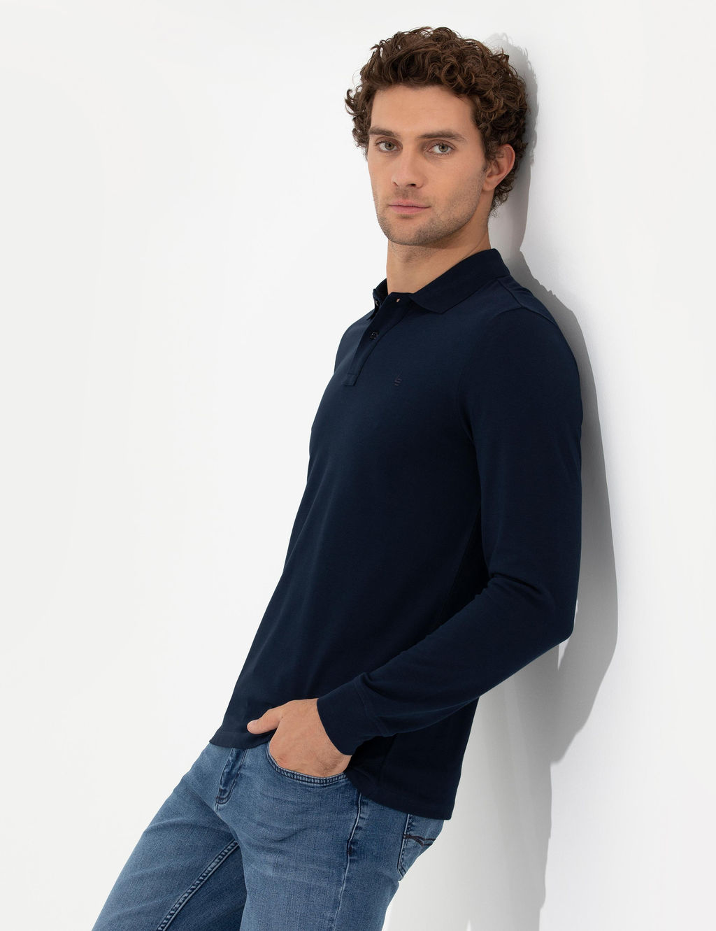 Темно-синий зауженный свитшот