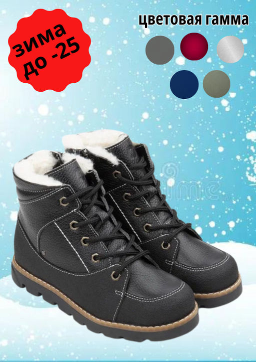 Ботинки детские шерсть 23016 кожа, СТОКГОЛЬМ черный