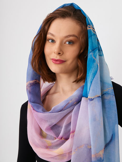 Большой, мягкий, тонкий и очень нежный двусторонний палантин с рисунком в стиле арт-деко