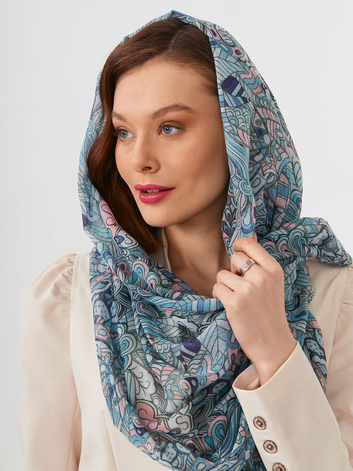 Большой, мягкий, тонкий и очень нежный двусторонний палантин с рисунком в стиле арт-деко