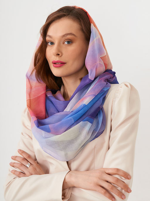 Большой, мягкий, тонкий и очень нежный двусторонний палантин с рисунком в стиле арт-деко