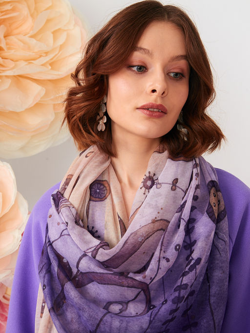 Большой, мягкий, тонкий и очень нежный двусторонний палантин с рисунком в стиле арт-деко
