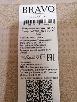 Махровое полотенце УЗ Самур м7030_05 S 30* 60 беж