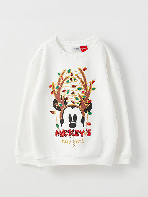 Bisiklet Yaka Mickey Mouse Bask?l? Y?lba?? Temal? Uzun Kollu K?z ?ocuk Sweatshirt