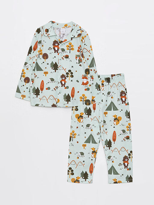 Polo Yaka Uzun Kollu Bask?l? Erkek Bebek Pijama Tak?m