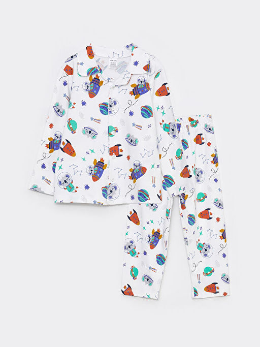 G?mlek Yaka Uzun Kol Bask?l? Erkek Bebek Pijama Tak?m?