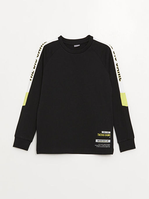 Bisiklet Yaka Bask?l? Uzun Kollu Erkek ?ocuk Ti??rt