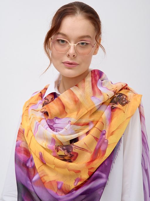 Большой, красивый двусторонний платок с рисунком в стиле "арт-деко"и необычной текстурой ткани.