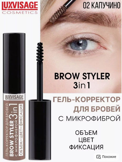 1LuxVisage Гель-корректор для бровей с микрофиброй ,тон 2 Капучино "Brow styler"3in1 6г