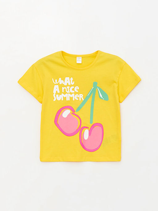 Bisiklet Yaka Bask?l? K?sa Kollu K?z Bebek Ti??rt