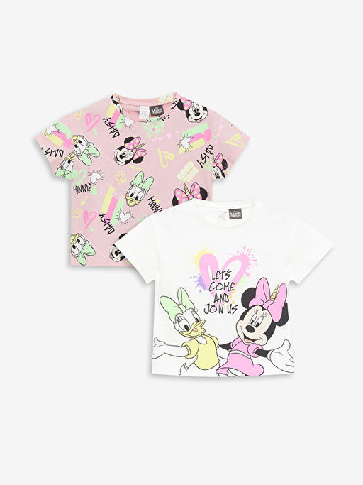 Bisiklet Yaka K?sa Kollu Minnie Mouse Bask?l? K?z Bebek Ti??rt 2li