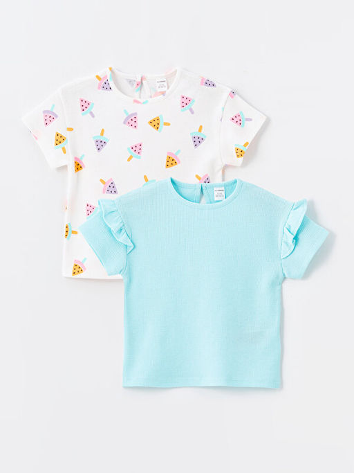 Bisiklet Yaka K?sa Kollu Bask?l? K?z Bebek Ti??rt 2li