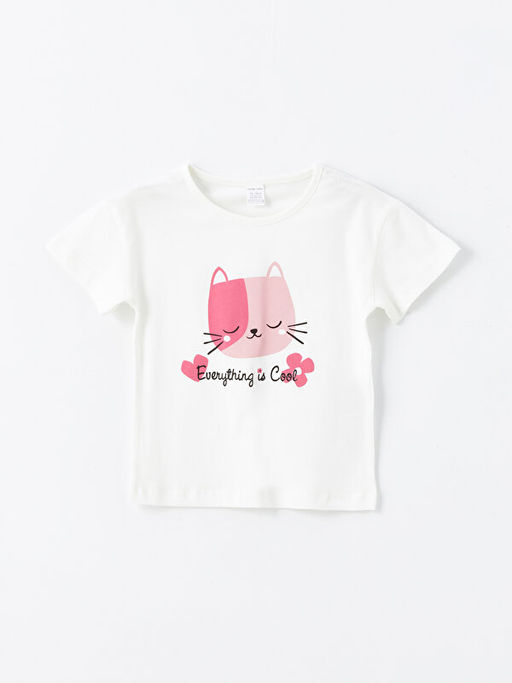 Bisiklet Yaka Bask?l? K?sa Kollu K?z Bebek Ti??rt