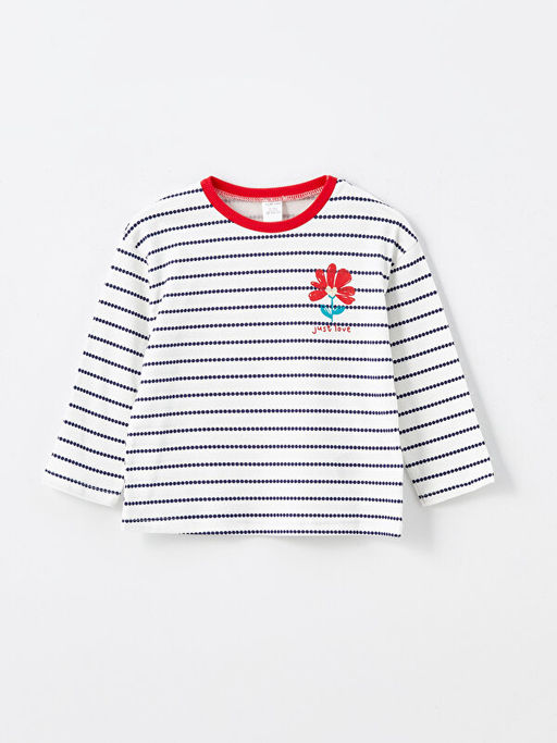 Bisiklet Yaka Uzun Kollu ?izgili K?z Bebek Ti??rt