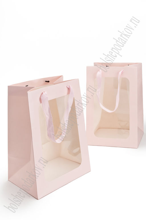 Пакет крафтовый с окошком 30*20*16 см (12 шт) SF-7487, розовый