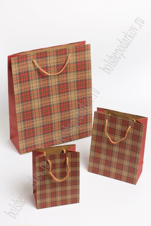 Пакет крафтовый с рисунком "Клетка" 26*32*10 см (12 шт) SF-7171, №2