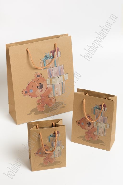 Пакет крафтовый с рисунком "Мишка" 12*16*7 см (12 шт) SF-7169, №4