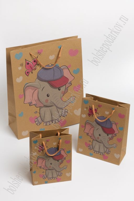 Пакет крафтовый с рисунком "Слоник" 15*20*7 см (12 шт) SF-7170, №1
