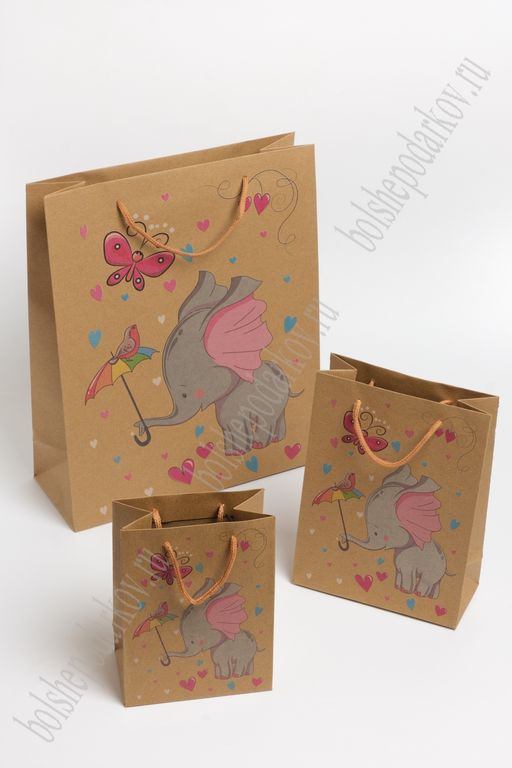 Пакет крафтовый с рисунком "Слоник" 26*32*10 см (12 шт) SF-7171, №3