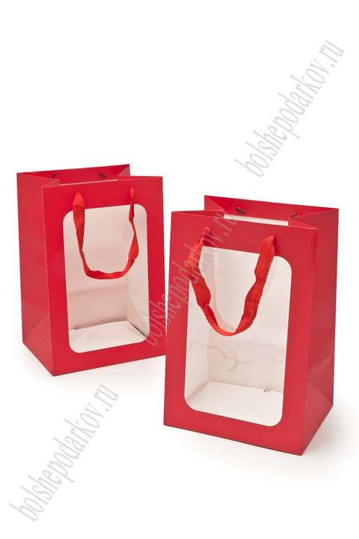 Пакет крафтовый с окошком 30*20*16 см (12 шт) SF-7487, красный