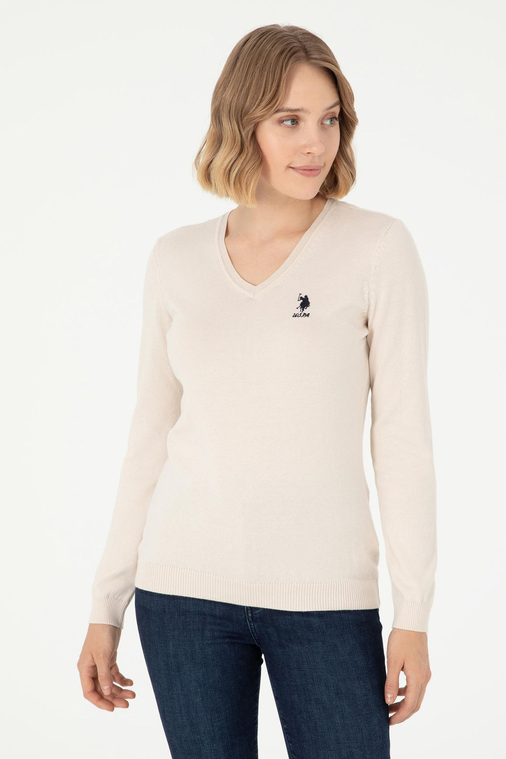 Женский базовый свитер кремового меланжевого цвета Неожиданная скидка в корзине